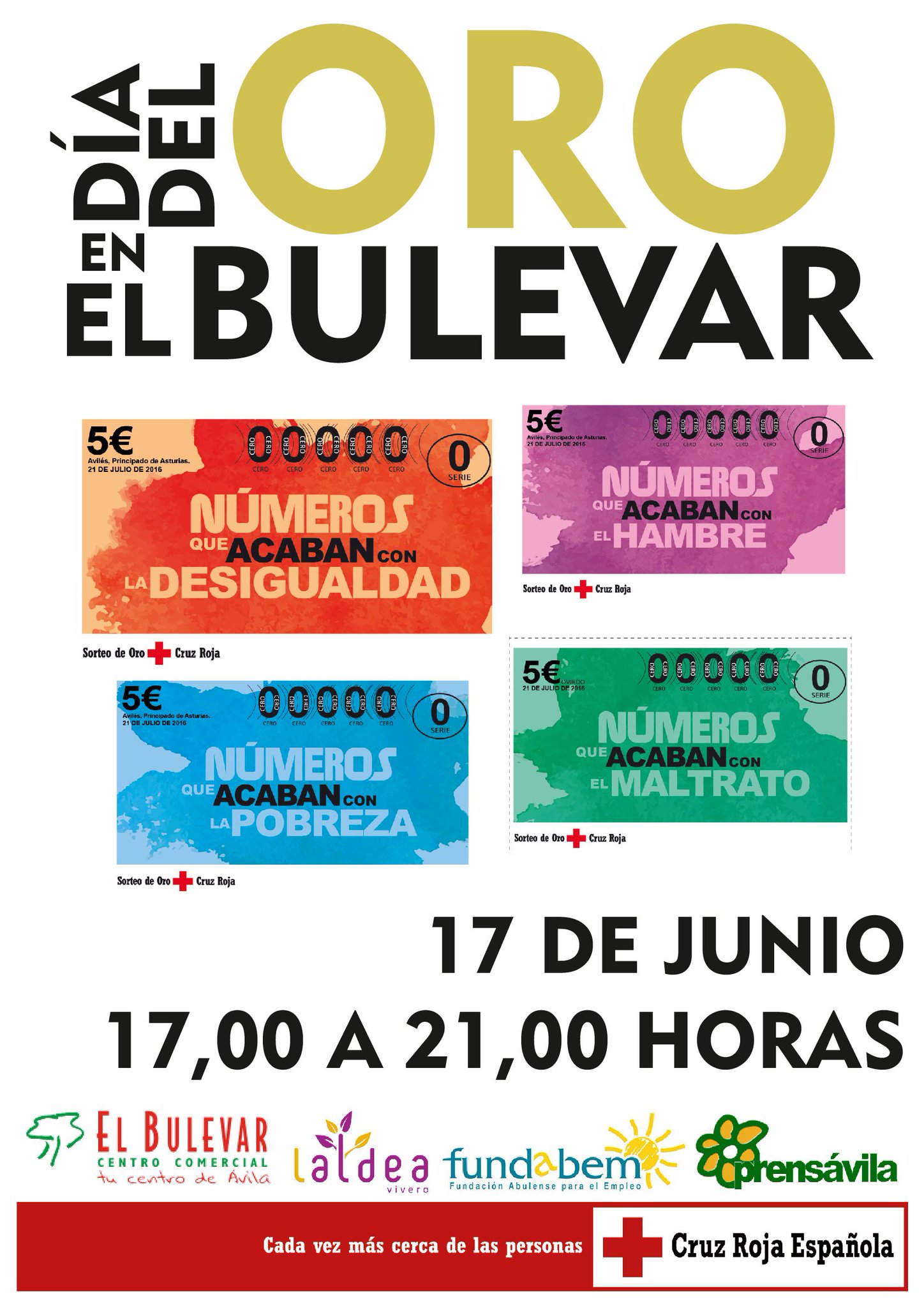Así, con el objetivo de mostrar a la sociedad abulense en qué consiste ese trabajo que la Institución lleva a cabo para ayudar a los que más lo necesitan, Cruz Roja realizará este viernes, 17 de junio, de 17 a 21 horas diversas actividades en el centro comercial El Bulevar, que colabora y apoya con Cruz Roja Española en Ávila de forma continuada. Un numeroso grupo de voluntarias y voluntarios de la Institución estarán dispuestos para atender preguntas, explicar procesos y, sobre todo, para compartir su labor solidaria con la sociedad abulense, que apoya la misma con cada Boleto del Sorteo del Oro que adquiere. Coindiendo la fecha con el Día Mundial de Lucha contra la Desertificación y la Sequía se realizará una actividad de sensibilización y gracias a la colaboración de Fundabem, La Aldea Vivero y Prensávila los 100 primeros boletos tendrán una planta como regalo especial.