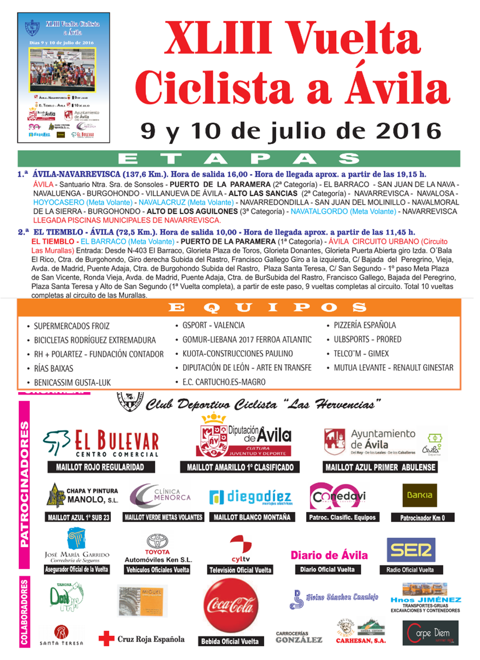 El 9 y 10 de julio no os perdáis la XLIII edición de la Vuelta ciclista a Ávila. El Centro Comercial El Bulevar de Ávila, hará entrega del Maillot rojo de la regularidad.